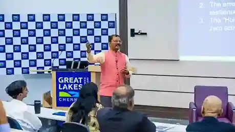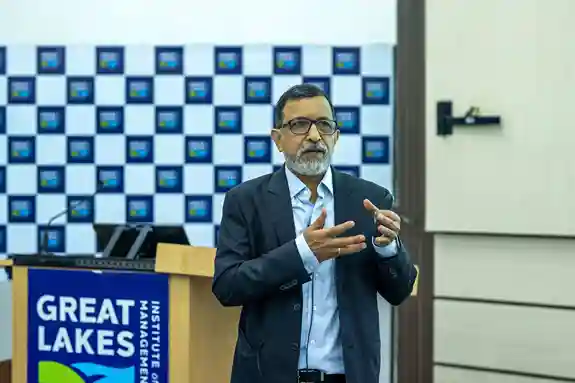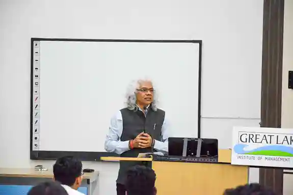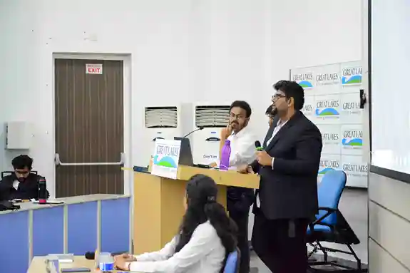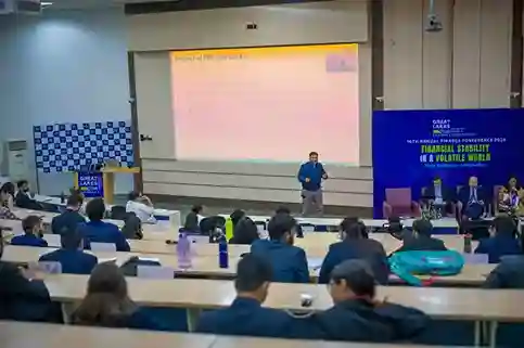 The day began with the inaugural session, with welcome remarks by the leadership of Great Lakes and contextual framing of the evolving macro-financial landscape, The Inaugural Address by the Chief Guest, Mr. Dharmakirti Joshi, Chief Economist, CRISIL, provided a comprehensive perspective on global uncertainties, domestic growth dynamics, and the policy challenges of ensuring stability amid volatility, followed by an engaging student Q&A. The morning also featured a research presentation on the market for NPAs, enriched by expert commentary and discussion.